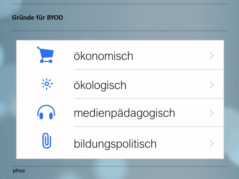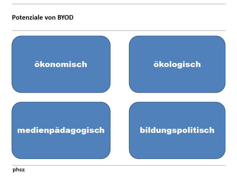 Neben allfälligen ökonomischen Vorteilen sind auch ökologische, medienpädagogische sowie bildungspolitische Gründe zu nennen, die für BYOD an den Schulen sprechen.