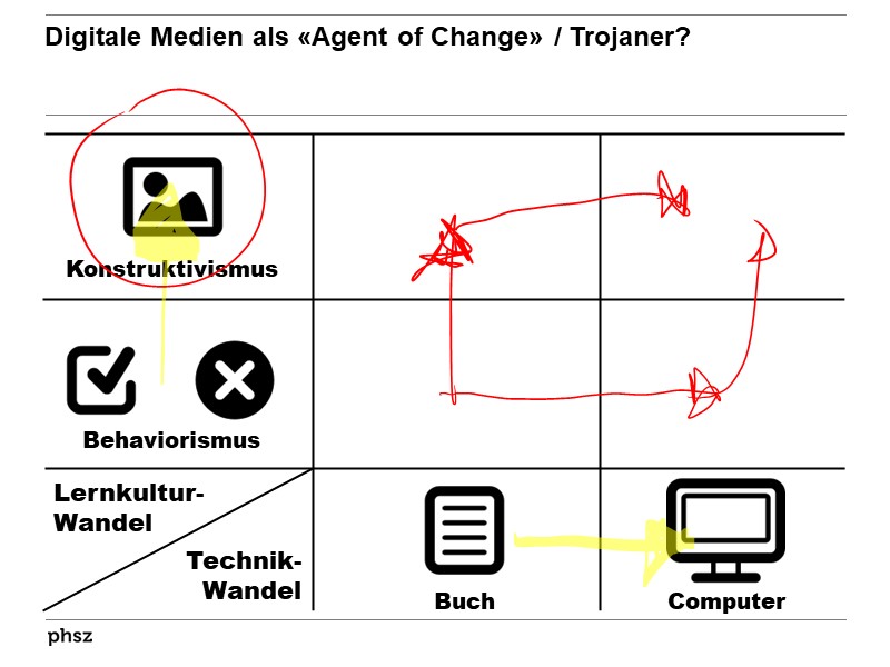 Exemplarisch ist hier zu sehen, dass sich für Lehrerinnen und Lehrer neue Handlungsräume erschließen, ohne bisherige Möglichkeiten einbüRen zu müssen. Und dabei ist hiermit das Potenzial einer interaktiven Tafelfläche noch gar nicht ausgeschöpft. Zudem dürfte es für die meisten Lehrkräfte eine Weile her sein, dass Geld in größerer Menge in "ihren Iclassenraum" investiert wurde. Insofern hat die Einführung von lWBs auch ein wertschätzendes Element gegenüber den beteiligten Lehrkräften. Sie erhalten eine wesentliche Ausstattungsverbesserung - in einigen Schulen ergänzen die IWB die Kreidetafel - für den Unterrichtsraum, die die alltägliche Arbeit entlasten kann.