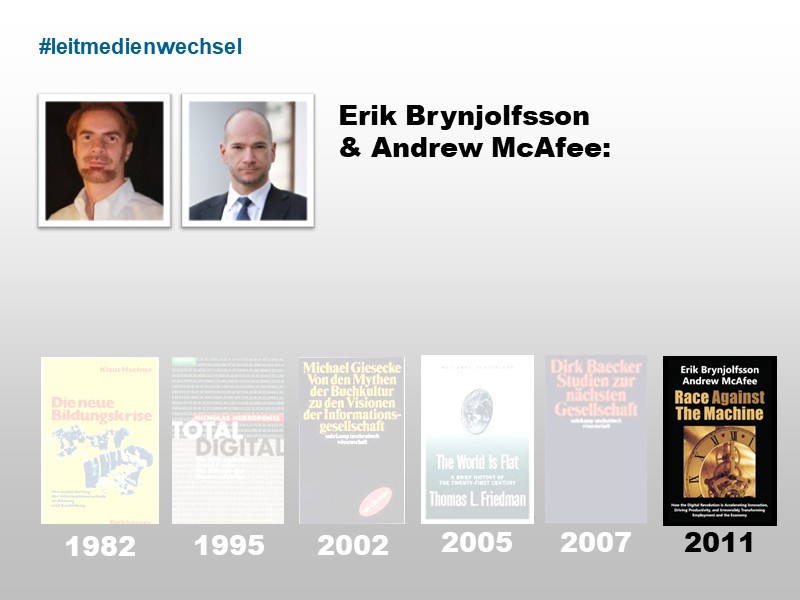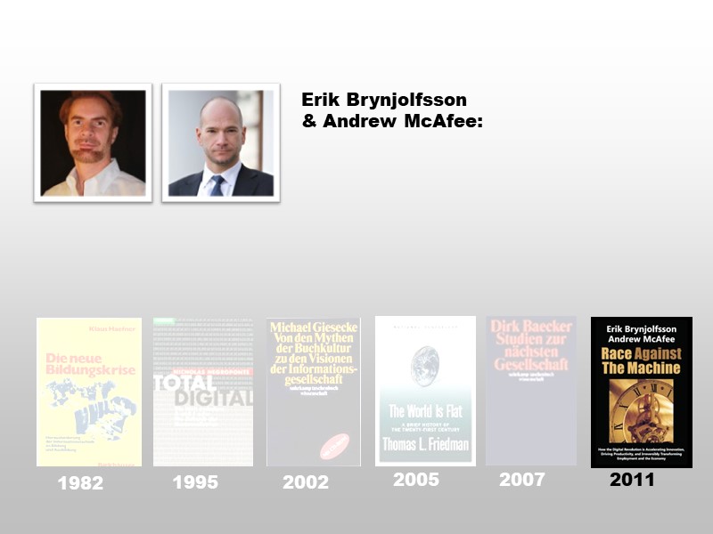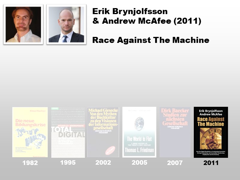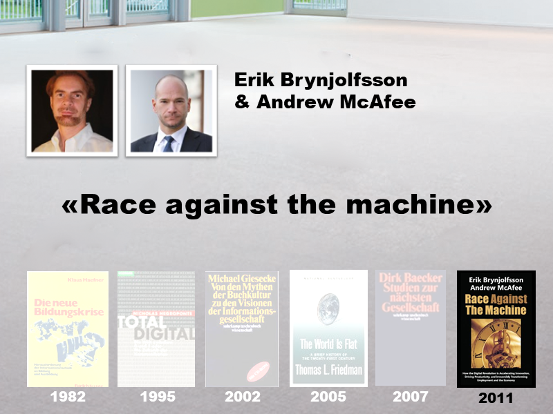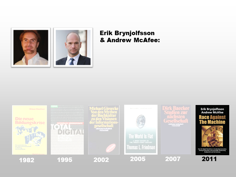 In ihrem aktuellen Buch „Race against the machine“ weisen die beiden Ökonomen Erik Brynjolfsson und Andrew McAfee 2011 auf die bereits von Haefner