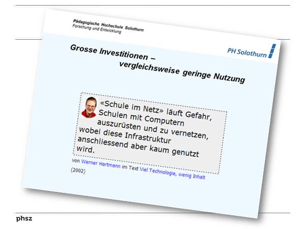 «Schule im Netz» läuft Gefahr, Schulen mit Computern auszurüsten und zu vernetzen, wobei diese Infrastruktur anschliessend aber kaum genutzt wird.
