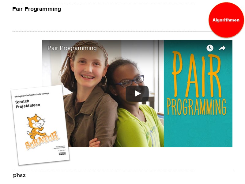 Die Pädagogische Hochschule Schwyz hat eine Broschüre mit acht Projektideen für Scratch entwickelt. Dabei wird jeweils ein Kernidee und einige Skript-Blöcke gezeigt, die ein erstes Erfolgserlebnis ermöglichen. Nach dieser Starthilfe bleibt jedoch sehr vieles offen und der individuellen Gestaltung überlassen. Die Broschüre eignet sich damit insbesondere für Projektarbeiten, wenn Scratch als Umgebung bereits bekannt und grundlegende Konzepte erarbeitet wurden.