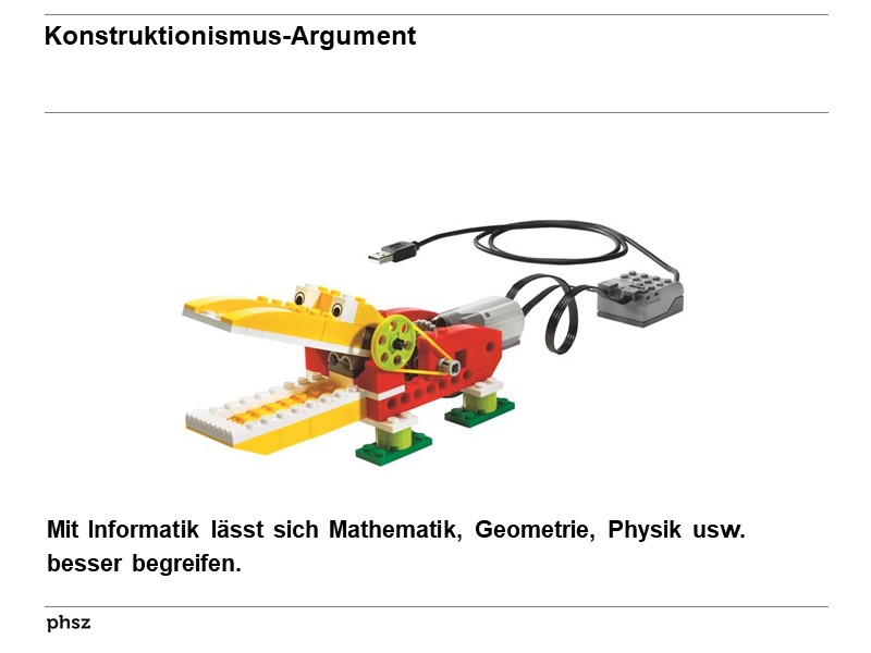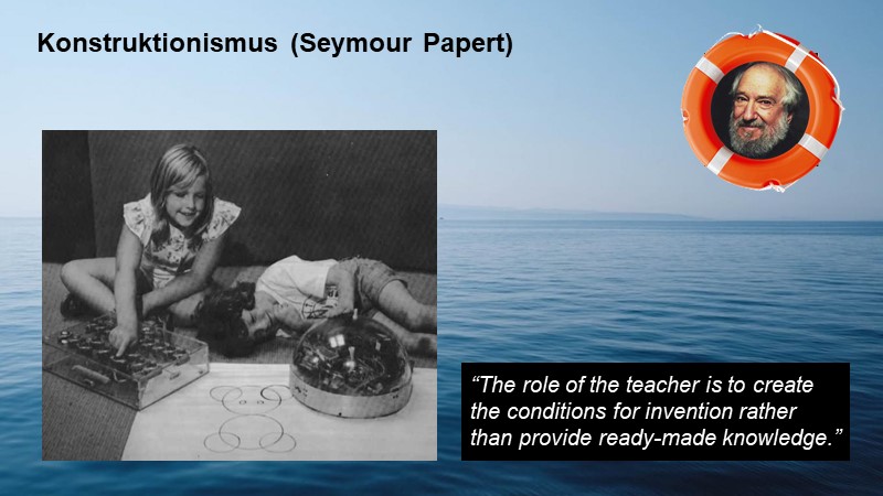 Seymour Papert entwickelte die Vorstellung vom "Konstruktionistischen Lernen" Paperts Ansatz basiert auf dem Verständnis des Konstruktivismus, das Lernen als aktiven Aufbau von Wissensstrukturen begreift. Wissen wird durch die Lernenden hergestellt, nicht von den Lehrenden vermittelt. Mit dem Konstruktionismus wird dies erweitert um die Vorstellung, dass dieser Aufbau von Wissensstrukturen dann besonders gut gelingen kann, wenn die Lernenden selbst etwas herstellen, konstruieren, ein äußerlich sichtbares, wahrnehmbares Objekt. Diese Objekte bezeichnet Papert als "Objects-to-think-with" Kinder sind dabei als aktive, ihr Lernen selbst organisierende und konstruierende Subjekte zu verstehen.
