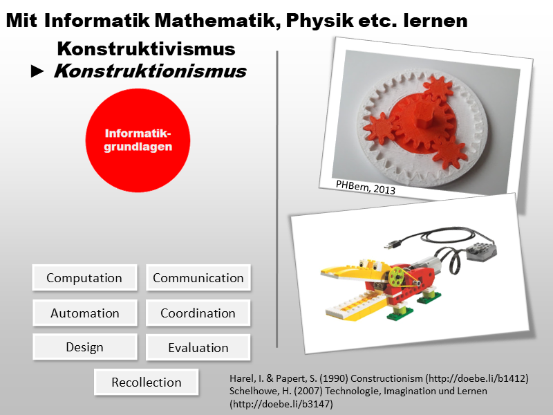 The general notion of constructionism (Papert’s re-phrasing of constructivism) was