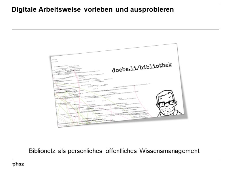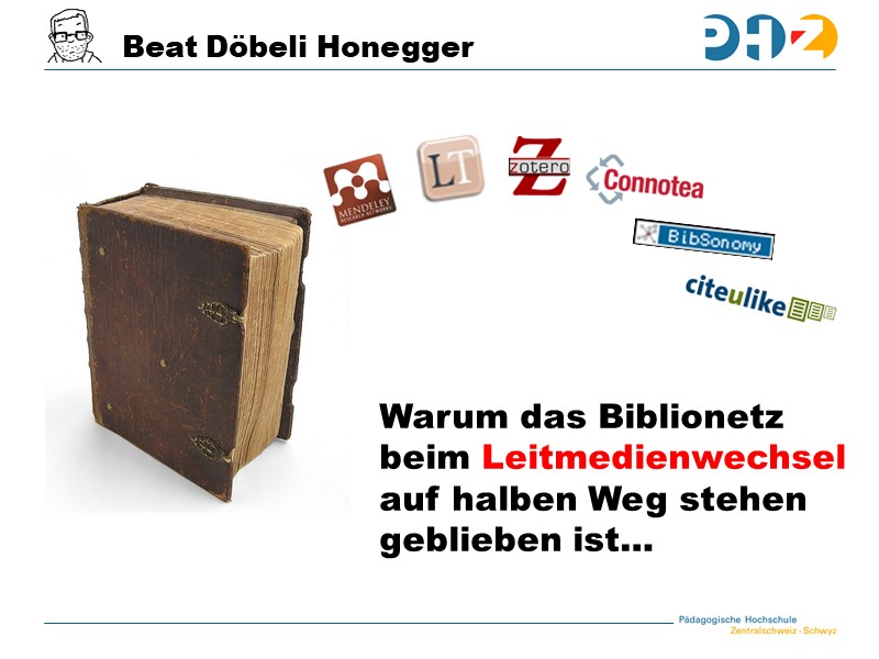 Eigentlich ist Beats Biblionetz kein Blog, sondern, wie der Autor Beat Döbeli Honegger es nennt, ein "Begriffs-, Personen- und Literaturnetzwerk". Aber es verursacht mit Abstand die meisten Ausschläge in meinem Newsreader, und wer diese Quelle bis heute noch nicht gesehen hat, hat etwas verpasst. Bildung universell. Quelle: http://www.weiterbildungsblog.de