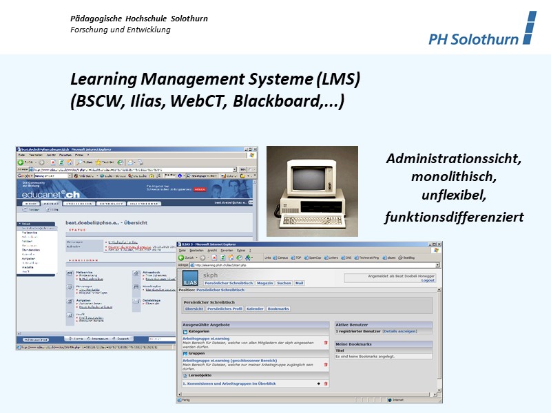Lernmanagementsystemen über die Zeit „soziale Komponenten“, wie z. B. Foren, integriert