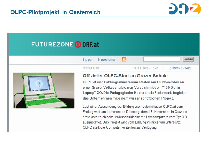 - First Experiences with OLPC in European Classrooms (Martin Ebner, Johannes Dorfinger, Walther Neuper, Christian Safran) (2009)