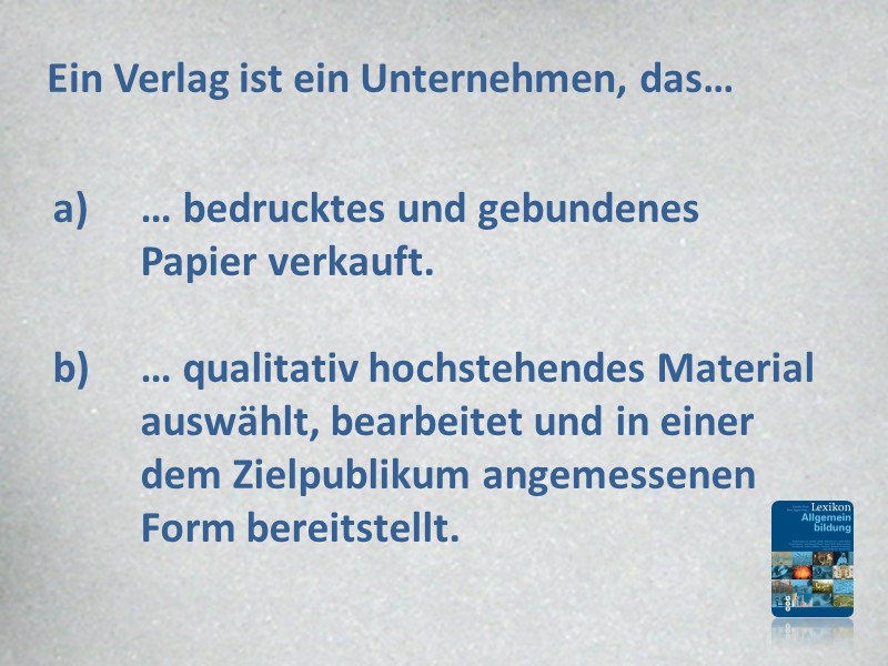 ![]() Verwandte Fragen | Gefährdet das Internet die Verlage? Gefährdet Open Access die Verlage? Gefährdet das iPad die Verlage? |