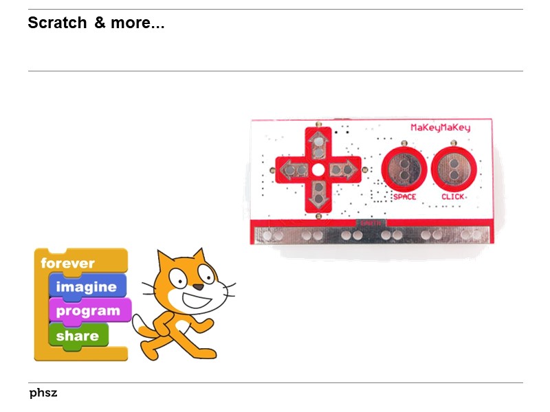 Michael HielscherBeat Döbeli HoneggerMaKey MaKey ist eine kleine Platine, mit dem sich leitfähige Objekte in Computertasten umwandeln lassen. Innert kürzester Zeit lassen sich damit kreative, auf Berührungen reagierende Installationen herstellen: Musikinstrumente, Computerspiele und vieles mehr!