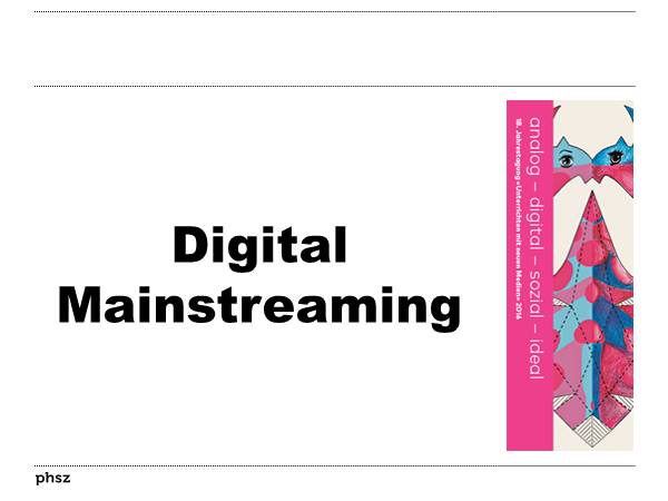 Digital Mainstreaming meint einen Perspektivwechsel. In gewisser Weise ist die Zeit vorbei, in der es sinnvoll und / oder ausreichend war, immer wieder tolle Beispiele zu zeigen, um die Potentiale digitaler Medien zu belegen und Akteure auf allen Ebenen aufzufordern, diesen Beispielen zu folgen. Wir müssen vielmehr konsequent überlegen, wie lässt sich eine bestimmte Aufgabe digital lösen.