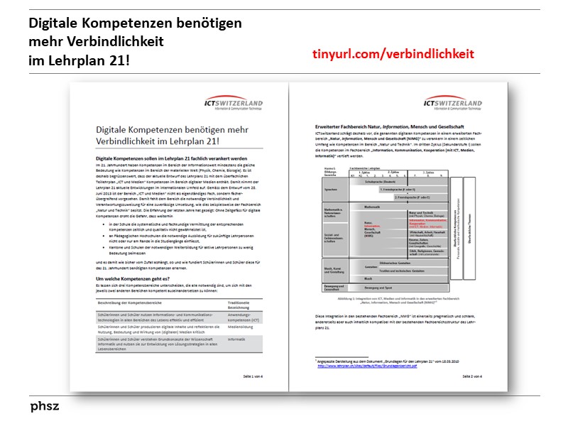 3, 13, 5, 9, 5, 5, 8, 4, 7, 3, 6, 14 | Digitale Kompetenzen benötigen mehr Verbindlichkeit im Lehrplan 21! (ICTswitzerland, Beat Döbeli Honegger, Claudia Fischer, Werner Hartmann, Juraj Hromkovic, Thomas Merz) | Positionspapier |