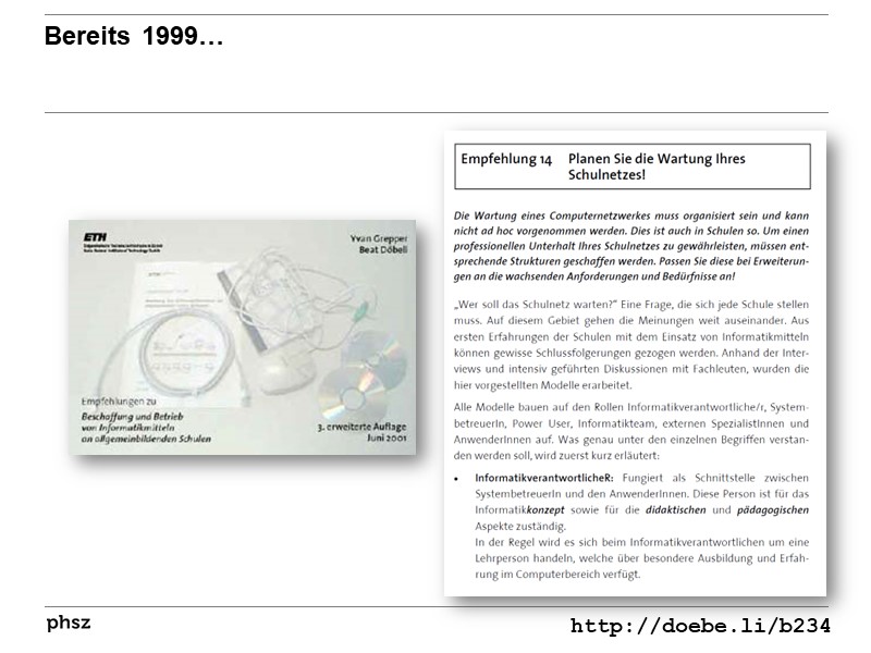 3, 13, 2, 4, 7, 2, 1, 3, 7, 5, 12, 9 | Systembetreuung an Schulen - Neue Herausforderungen durch Notebooks und Wireless LAN (Beat Döbeli Honegger) erschienen in GI-Konferenz INFOS 2001 | Text |