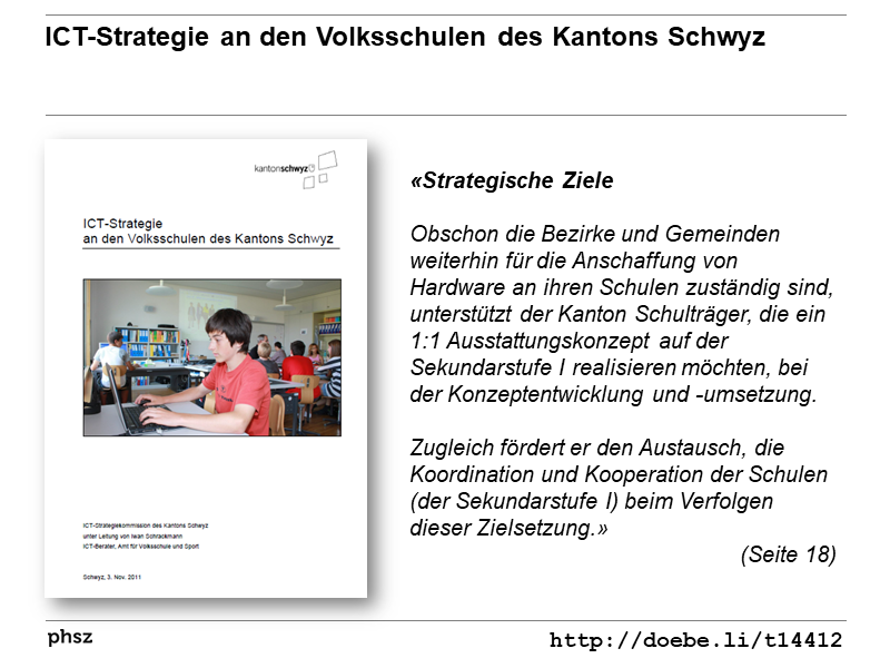 ![]() | ICT-Strategie an den Volksschulen des Kantons Schwyz: Artikel als Volltext ( : , 1205 kByte; : Link unterbrochen? Letzte Überprüfung: 2018-01-11 Letzte erfolgreiche Überprüfung: 2016-12-28) |